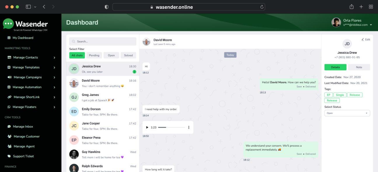 wasender is a complete cross-platform WhatsApp CRM and marketing tool that helps businesses manage conversations, automate customer engagement, and run marketing campaigns through WhatsApp.